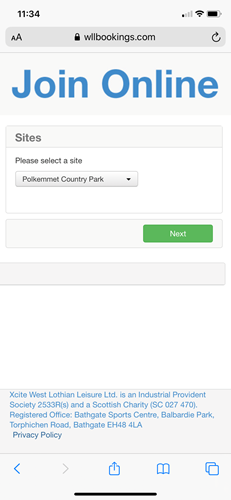 Choose from the drop-down menu what Venue you would like to join. For golf please select Polkemmet or Xcite Bathgate. Note all our other venues are currently closed.
